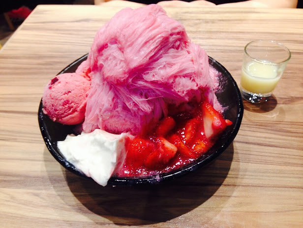 草莓雪花冰再淋上煉乳真的是”超.邪.惡”,明知熱量不低,又一口一口往嘴裡送,草莓雪花冰在舌尖上融化,酸酸甜甜的滋味好好吃…