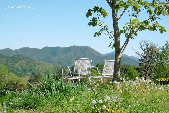 這裡的視野真是好呀!旁邊的停車場可以遠眺前方的八岳山,青山、綠地、藍天、白雲…這就足以讓人心遺在這兒!