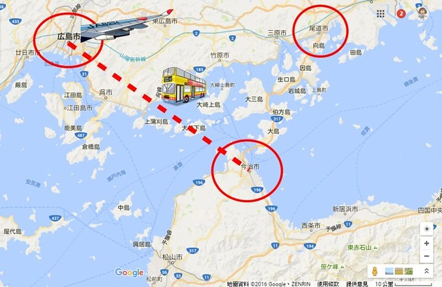 由於尾道在中國的廣島縣,今治在四國的愛媛縣,中間隔著瀨戶內海…