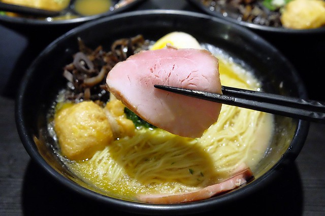 其實配料和上一碗大同小異,就是黑木耳、糖心蛋、叉燒和福袋…等,只不過湯頭就有區分了…