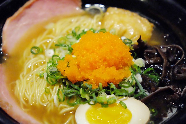 除了基本的黑木耳、糖心蛋、叉燒肉和蔥花之外,中間還有一大陀的蝦卵,看起來色澤真是鮮艷又逼人…