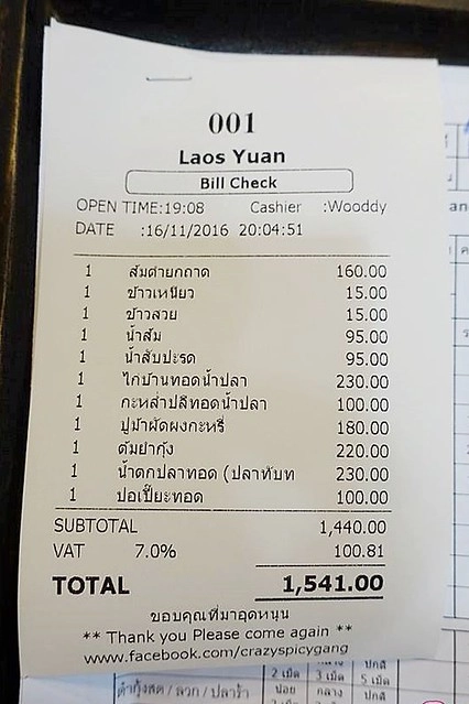 兩個人吃了1541銖,很多都吃不完,有點浪費,我想…我們應該快被雷公打了!