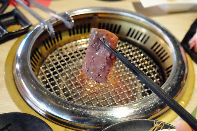 以往我吃燒肉是不沾醬的,不過服務人員這樣先沾醬之後再烤,居然比我想像中的好吃很多,多了些醬香和焦香氣,卻不會死鹹,有好吃!