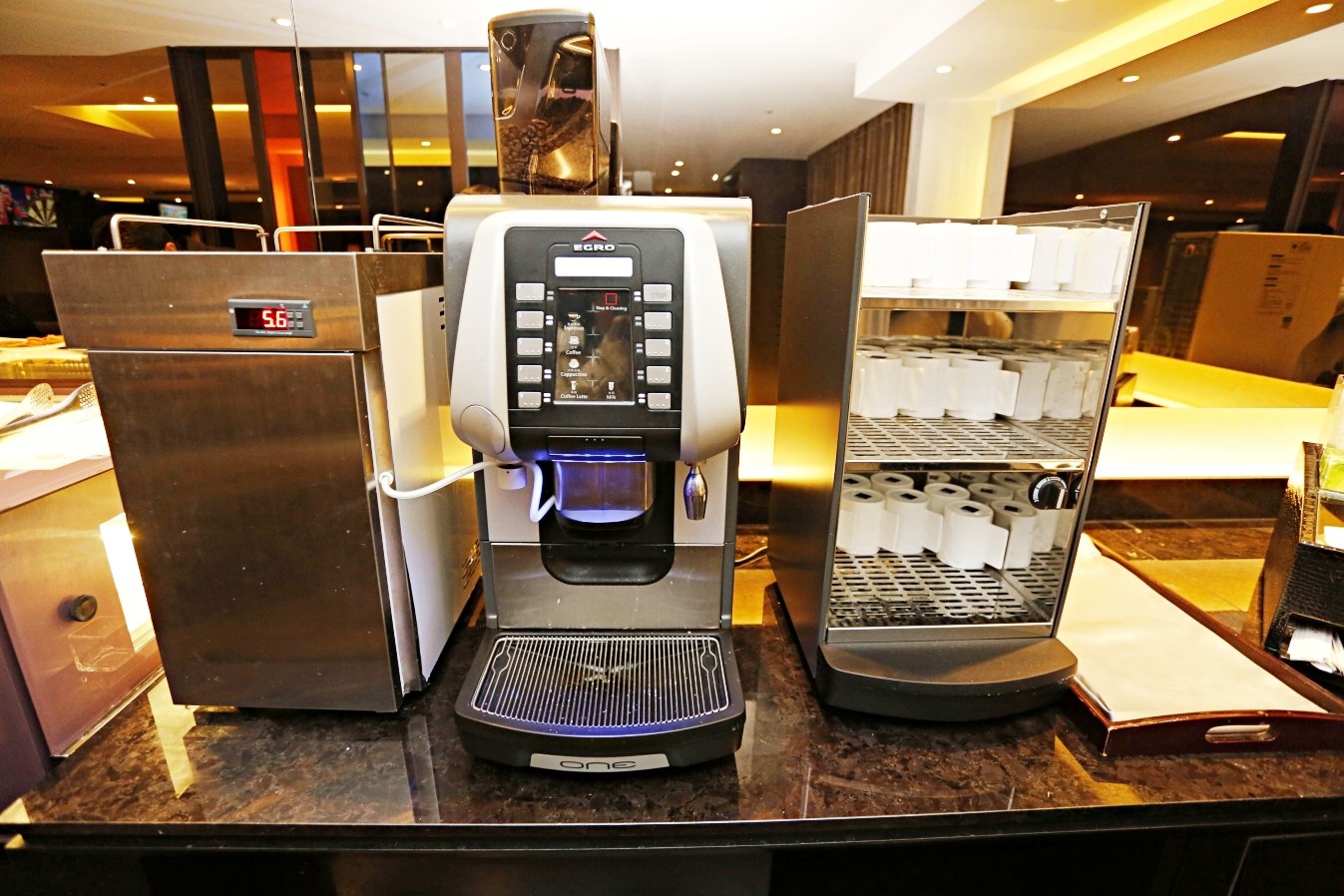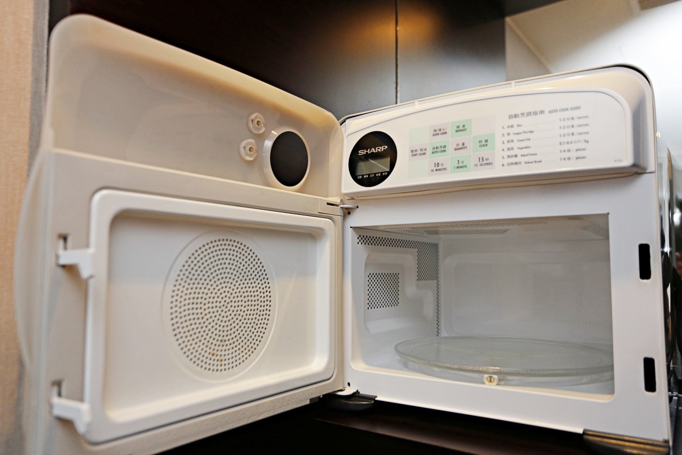 一旁是精緻的Mini Bar空間,這時突然看到令人驚訝的設備,房間裡出現微波爐,讓房客就算回到房間,還可以利用來加熱食物使用,這點真是太方便了…