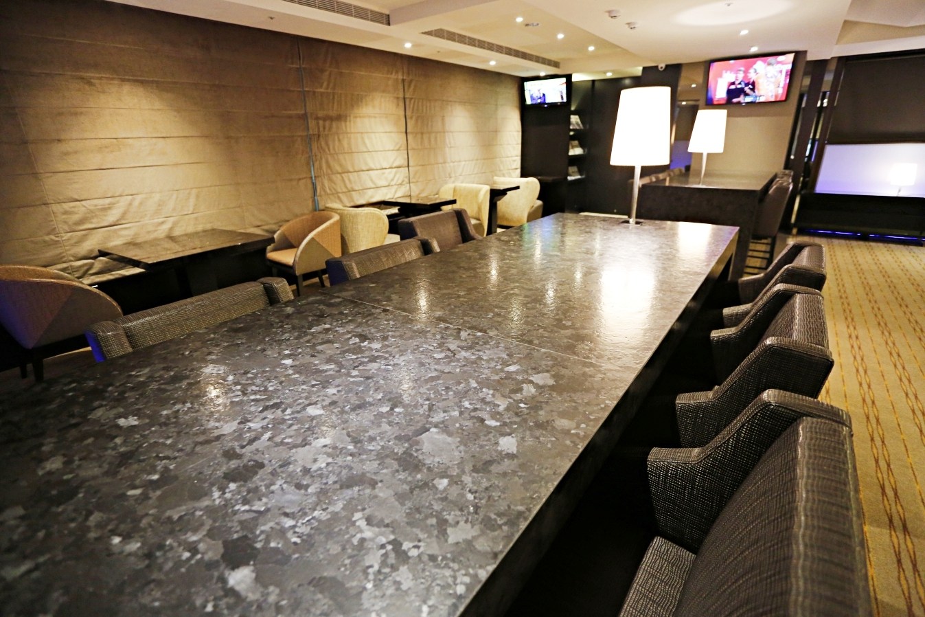 一樓提供給旅客使用的交誼廳,裝潢高雅燈光營造出不錯的氣氛…