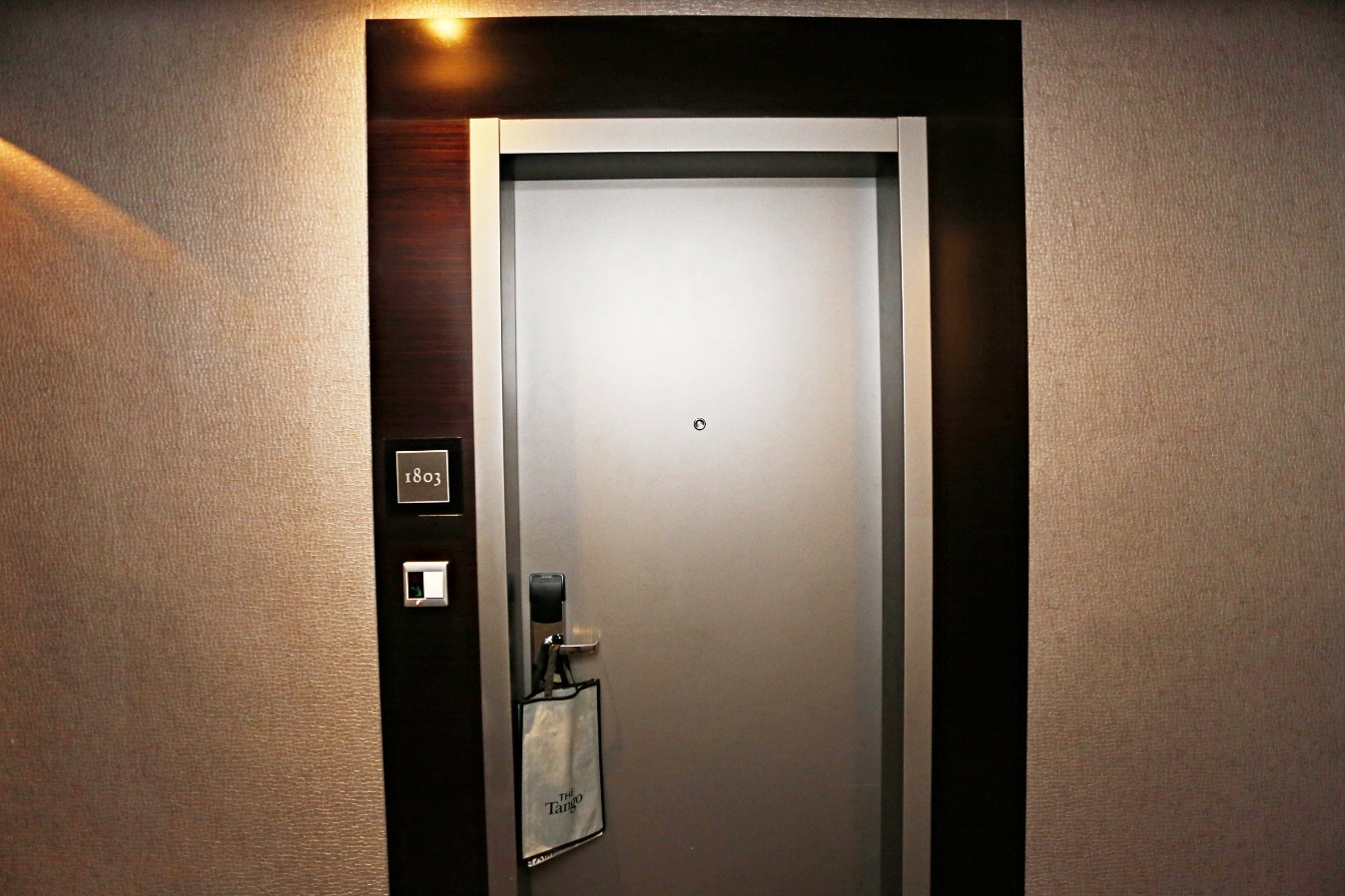 這張照片是隔天才拍攝的,門把上還掛著贈送的當日報紙…