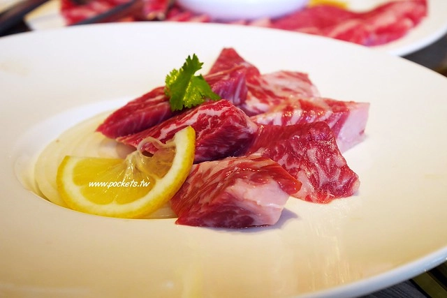 牛肋條 – 這個也是有事先醃漬過,切成細長型的,切成條狀吃起來比較有厚過,口感相對也比較過癮…
