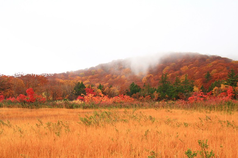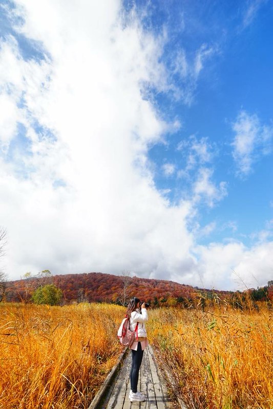 我們是10月中的時候到八幡平的大沼,當時楓葉正紅,整個如詩如畫,讓我相機拍不停啊!東北的紅葉季真的是美到不像話!