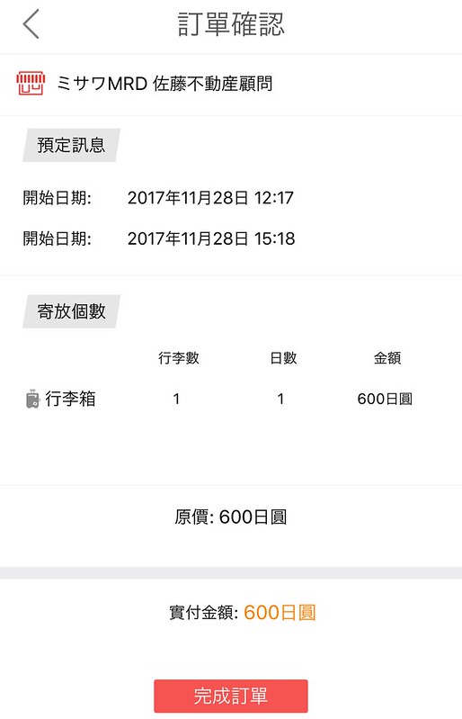 點選你需要的那個寄放處之後,就可以進行「行李寄存預約服務」…