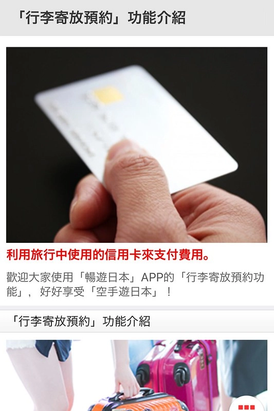 在【暢遊日本】APP裡,可以找尋離飯店最近的行李寄放處…