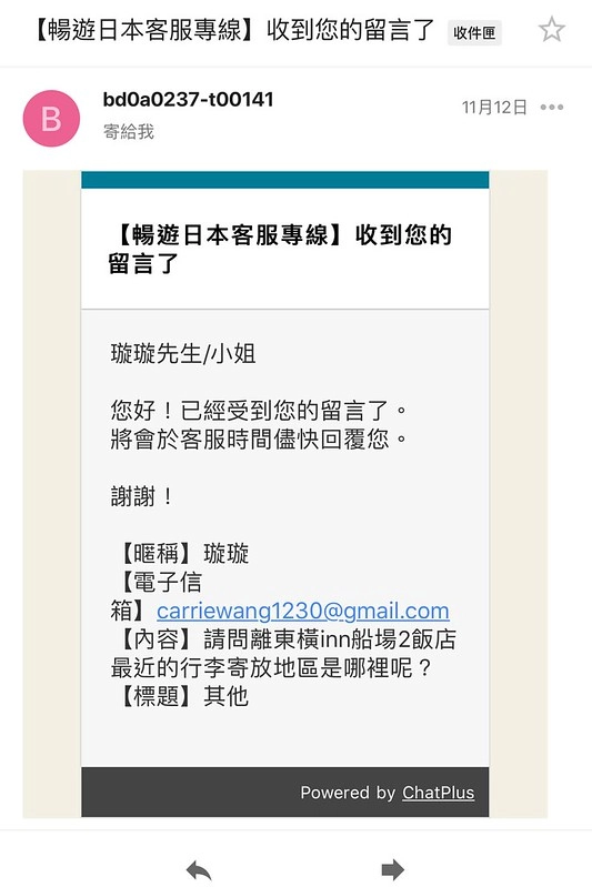 像我這次有遇到行李寄放的問題,所以在半夜的時候就寫信問了「線上客服諮詢」人員…