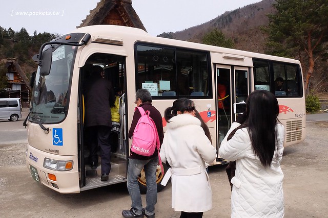 - 搭乘濃飛巴士「高山~白川郷・金澤線」從金澤站出發,於白川鄉下車,搭乘費用單程2,000元,來回3,600日圓。(時刻表)