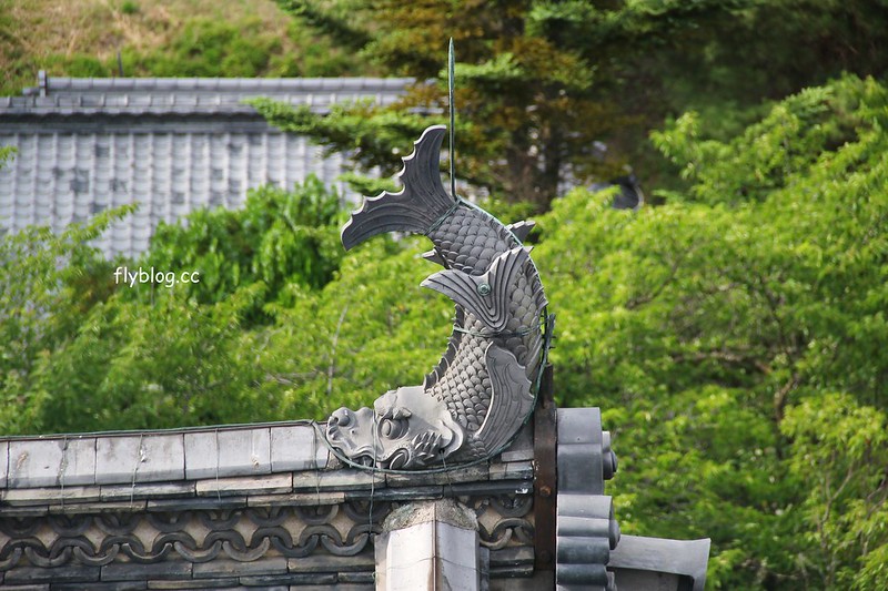 圖中就是虎頭魚身的鯱瓦(しゃちがわら),據說在戰國時期的主要功能是用來防火符咒…