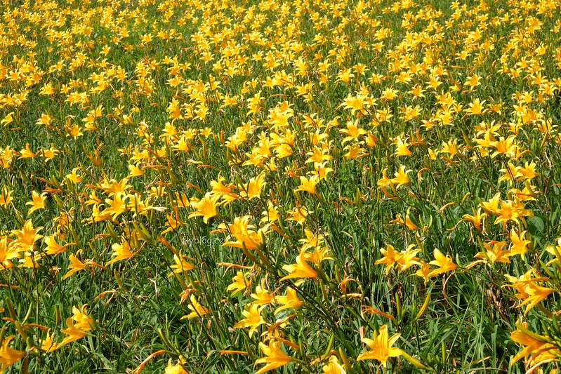 爬到上面,可以居高鄰下欣賞金針花海,又是不同的視野…