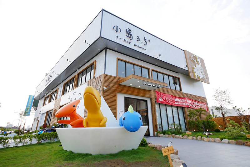 「小島3.5」親子餐廳位於北屯經貿三路,這一帶算是重劃區了,門口有三隻可愛的小恐龍,真的是大家搶著拍照…