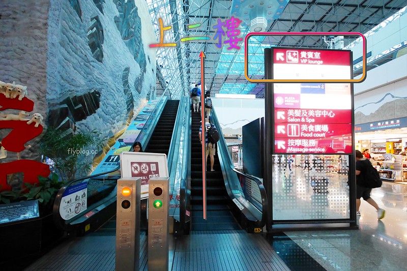 一過海關之後左轉,不到200公尺就可以看到右手邊的手扶梯,沿著手扶梯走上去就可以抵達華航「梅苑貴賓室」了…