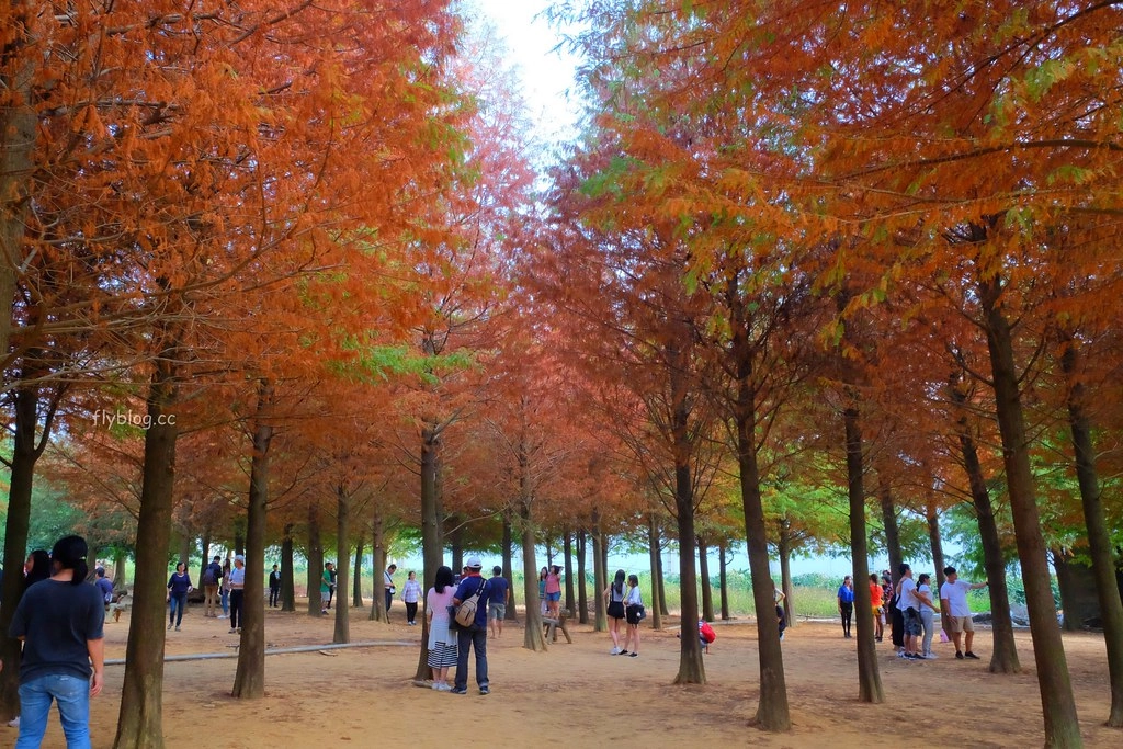 和其他地方比較不一樣的是:這裡除了落羽松之外,還有很多可愛的糜鹿,所以吸引很多網美來拍照取景…
