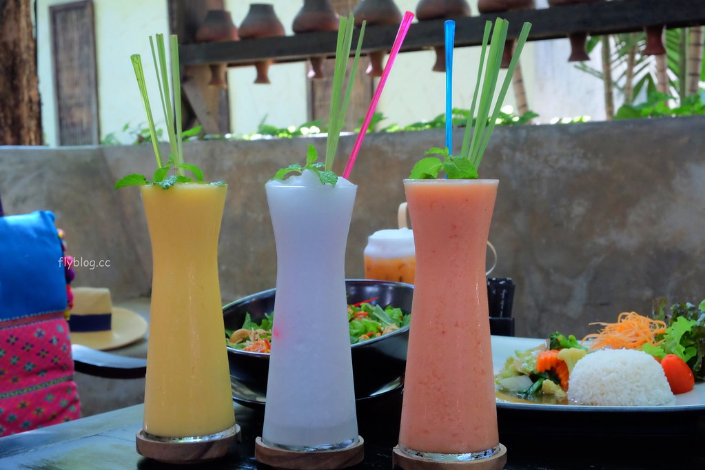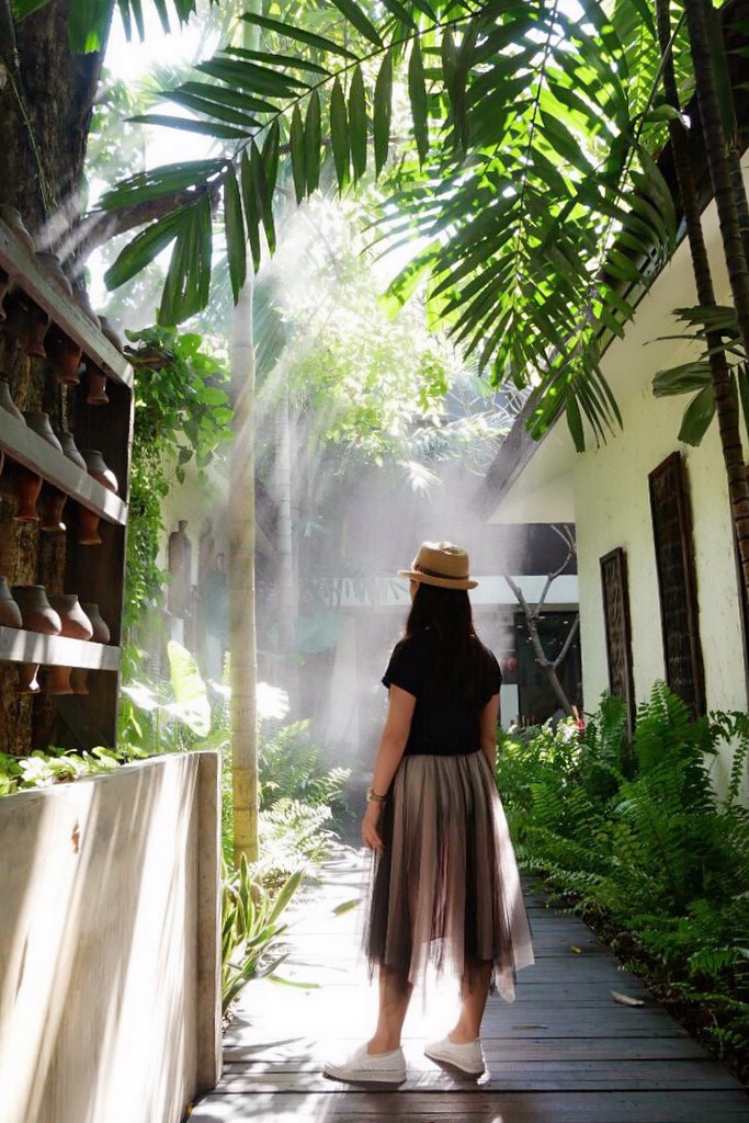 坐在室外難免有點熱,不過11月的清邁天氣還OK,而且庭院還有噴霧設備,可以降低溫度,所以涼涼的很舒服…