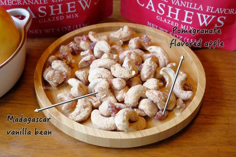 腰果吃起來香脆順口,因為石榴果汁的關係,吃起來帶有水果清香,而且又多了點酸甜,吃起來不油膩…