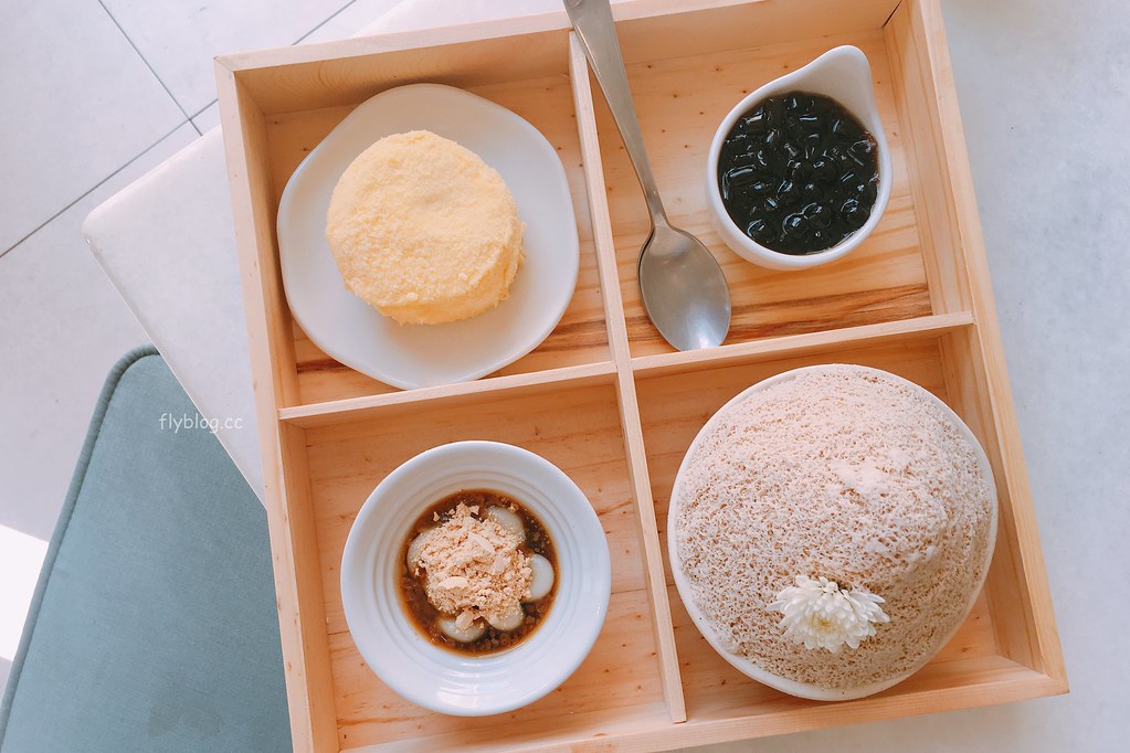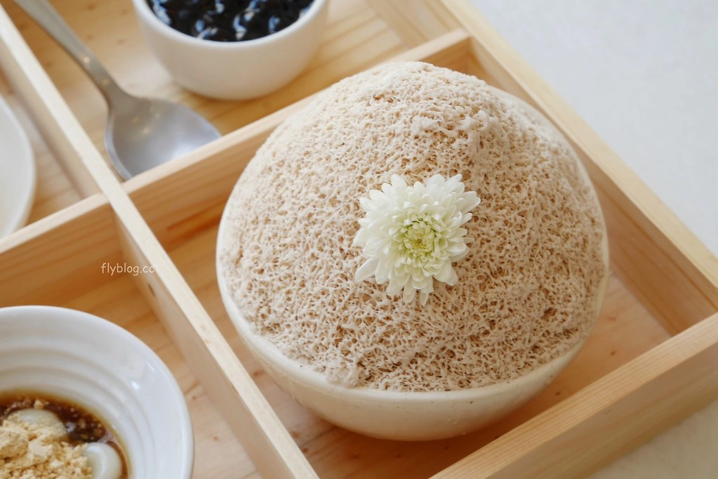 雪花冰是伯爵紅茶口味,上面還有一朵小菊花,居然沒有半點違合感,還滿搭的耶!