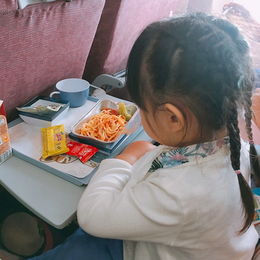 搭乘19:40的飛機,抵達台中大概21:10左右,小櫻桃一上飛機沒多久就睡了,連晚餐也沒什麼吃…