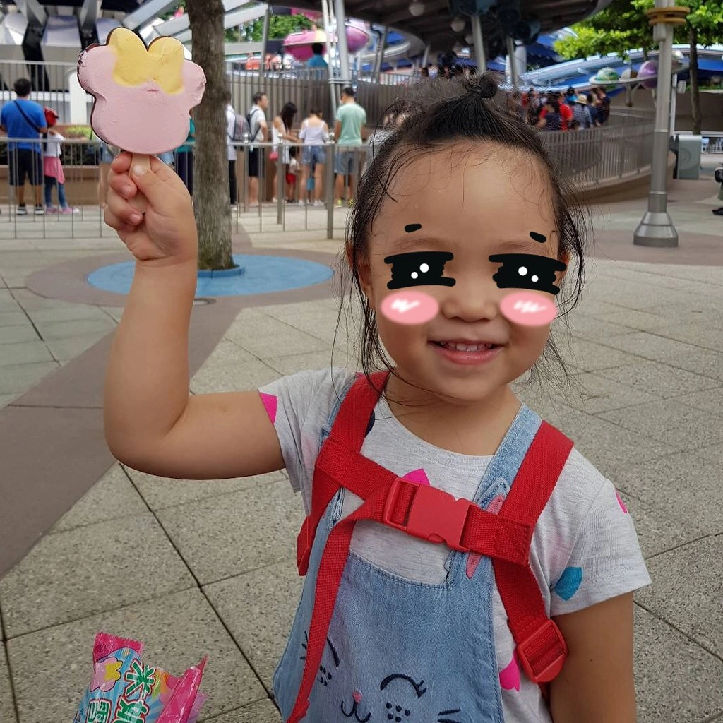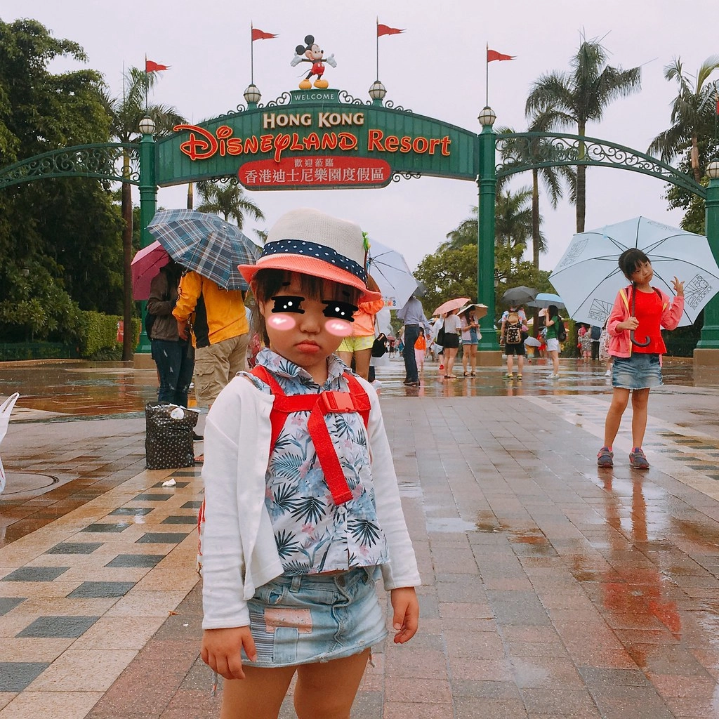 6月的香港真的是滿曬的,不過小孩子還是玩得很開心,不過因為小櫻桃才三歲,未滿100cm,所以園區裡面很多遊樂設施是不能玩的…