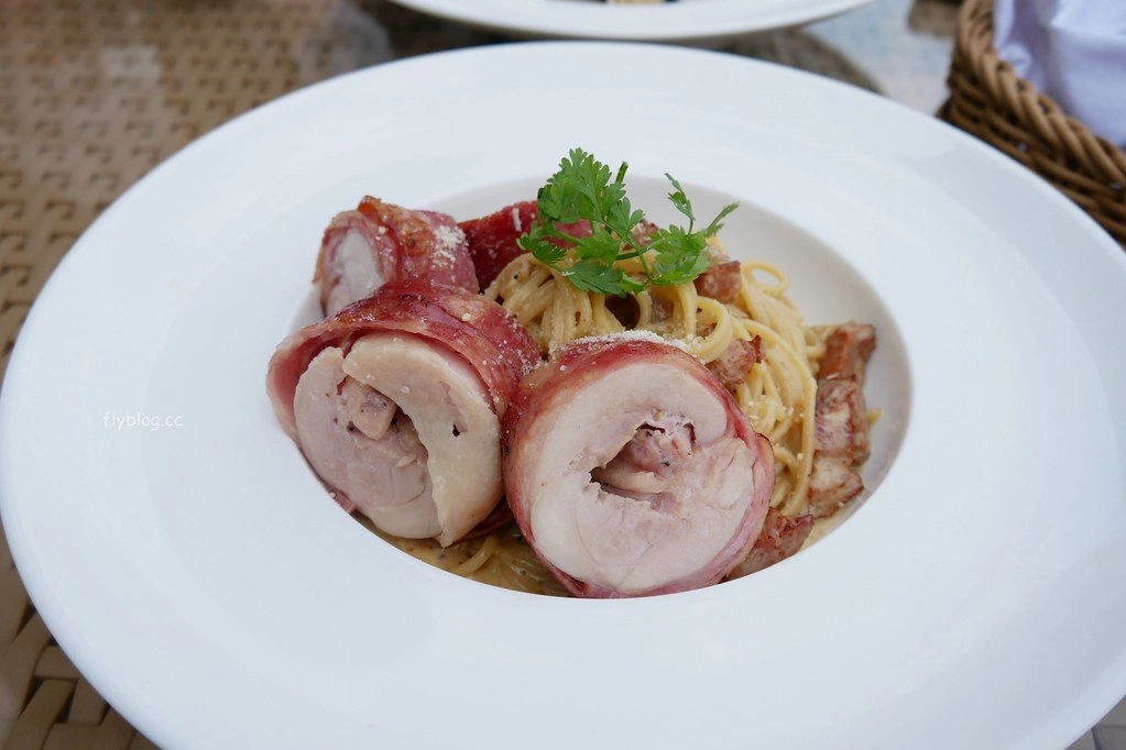 培根奶油蛋黃義大利麵 – $380元,我是為了”奶油”兩個字點的,沒對”培根”兩個字有太多的想法…