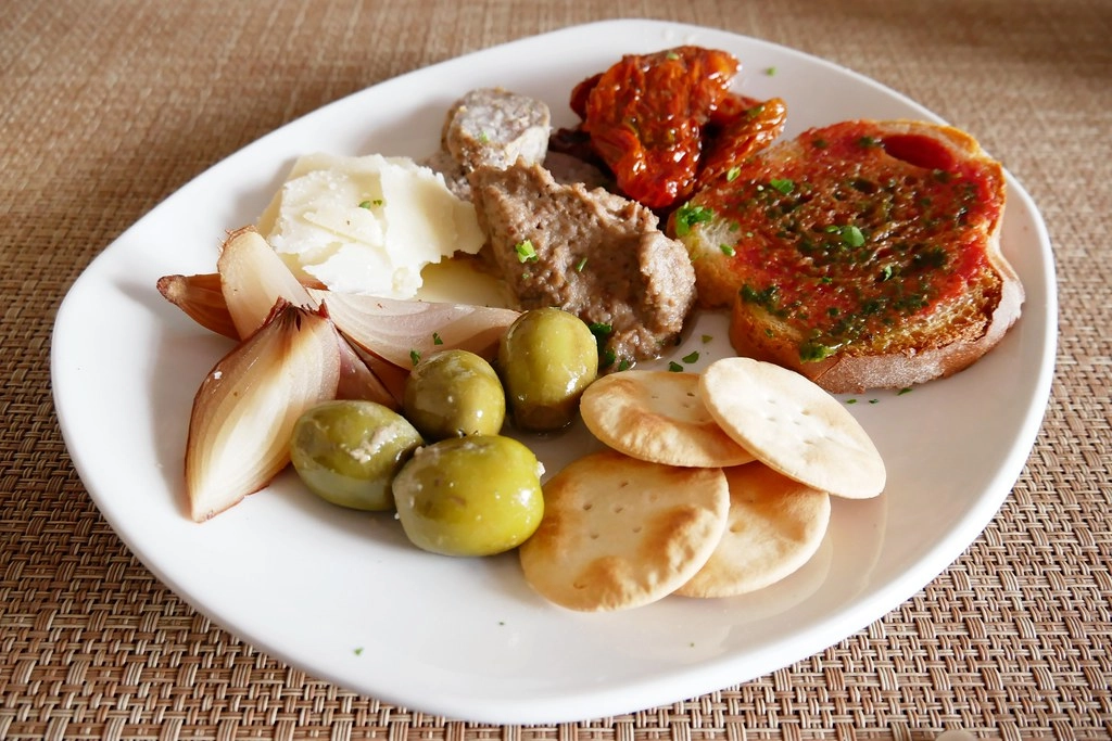 在馬爾他的餐廳用餐,十之八九的餐前菜一定會有這麼一盤”特色前菜拼盤”,多半是由馬爾他傳統餅乾、醃漬蔬菜、乾乳酪和麵包所拼湊而成…