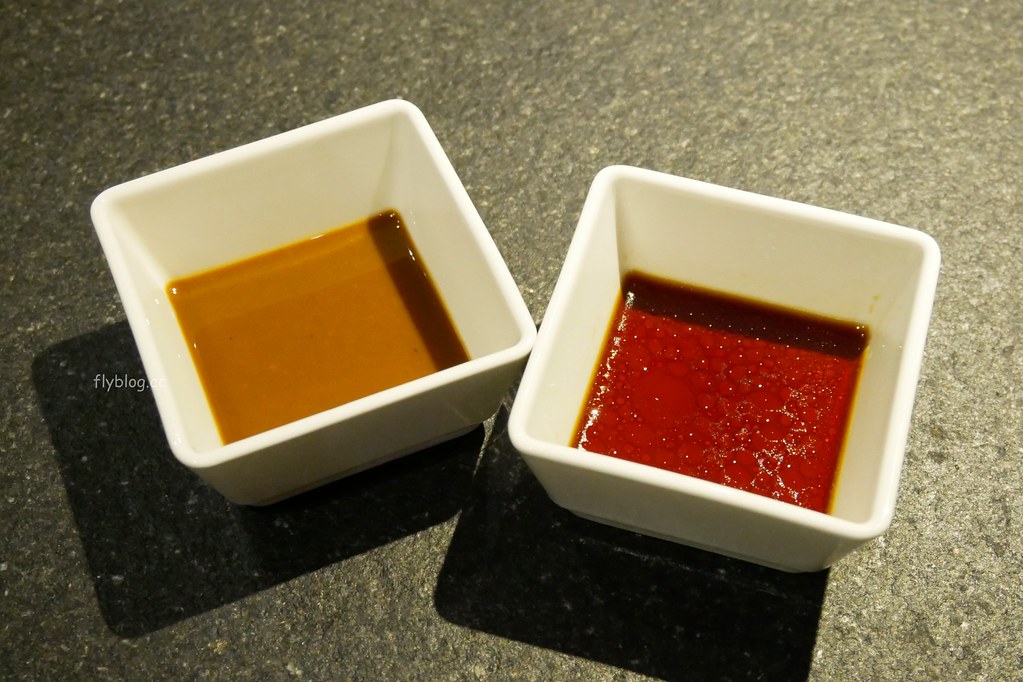 一上桌之後,服務人員就為每個人送上油醋醬和胡麻醬,不過我吃火鍋向來不太用沾醬…(拍謝~很不負責!
