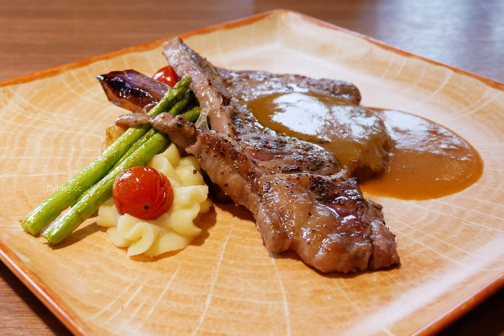 爐烤美國肋眼 – $980,肋眼是我點的,因為我愛吃牛肉,熟度應該5分,厚度比較薄了一些,不過口感滑順帶著豐盛的油脂,還有美味的肉汁蹦出…