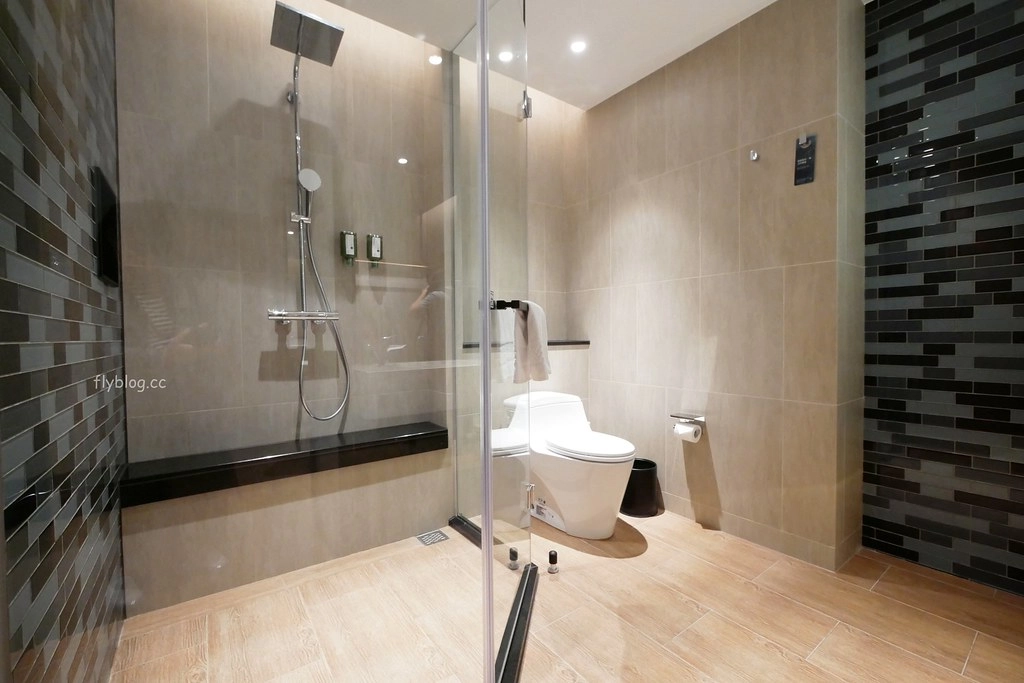 台中萬楓酒店(看房價)的衛浴也是半開放式的設計,把拉門拉開之後視覺上會更寬敞,如果需要隱密性,也可以把拉門拉起來…