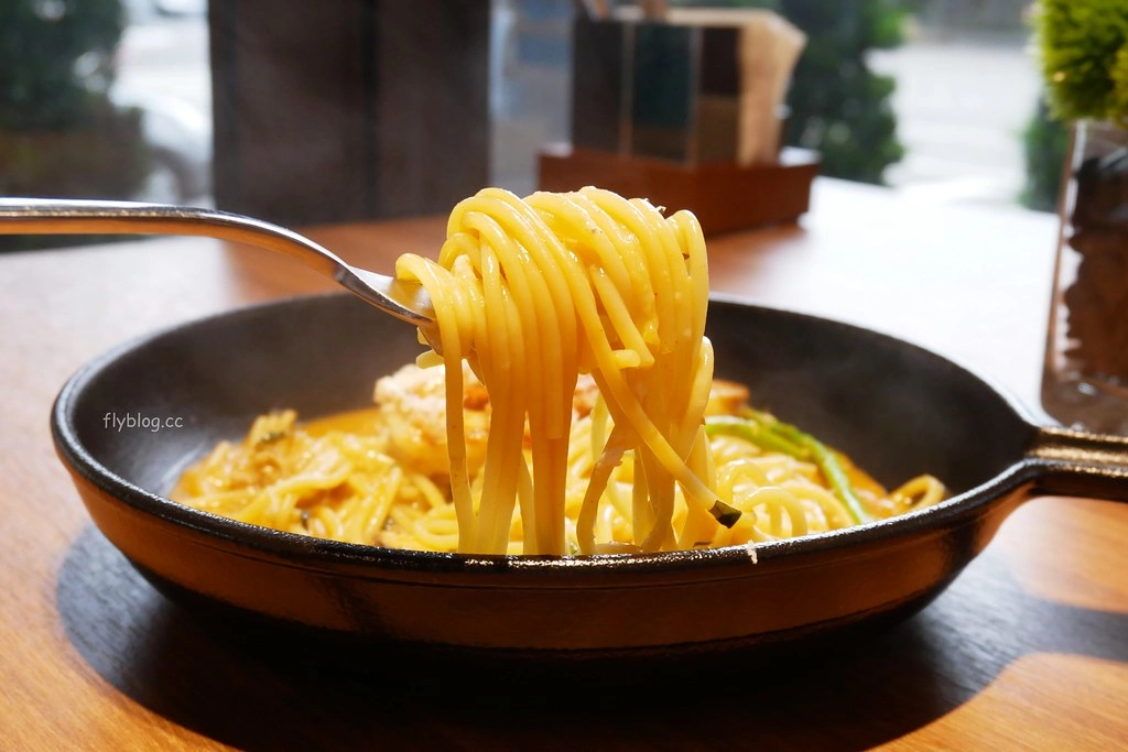 虎蝦羅勒蟹肉汁麵 – $480,這道義大利麵在menu上看到的時候就非常的誘人,果真實品一上桌也沒讓我們失望,醬汁很濃郁,義大利麵也有入味,而且吃起來有彈牙…