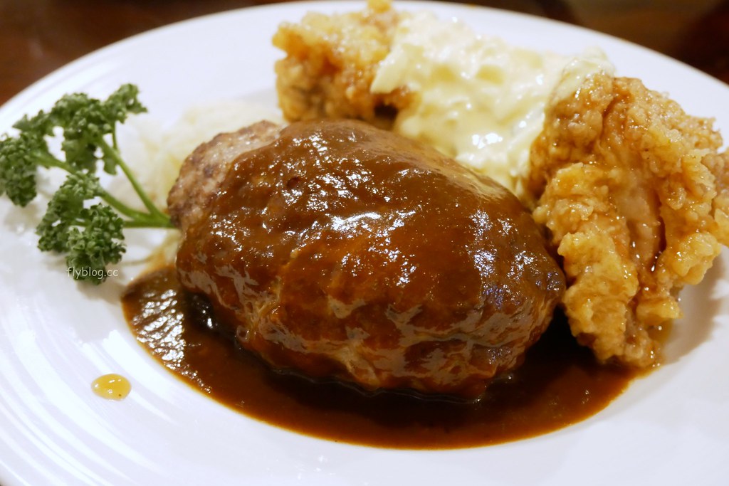 我覺得最厲害的還是漢堡排,使用牛:豬 (7:3)的比例,再加入蛋、炒過的洋蔥、牛乳…等等食材…