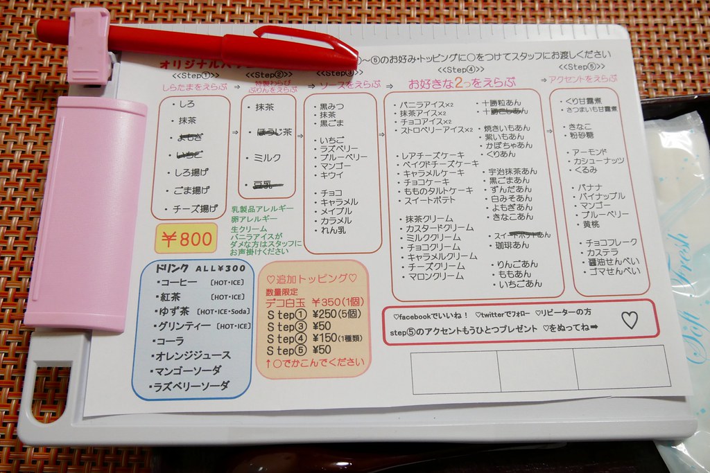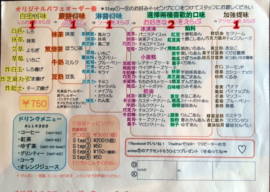 Menu自已依據選擇自已要的口味,然後組成一個自已專屬的抹茶白冰甜點!