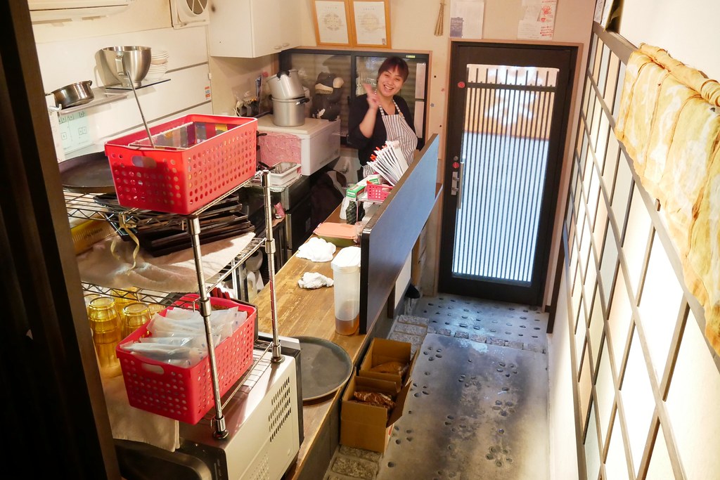 「ことたま白玉專賣店」的一樓,可愛的闆娘看到我在拍照還比耶!