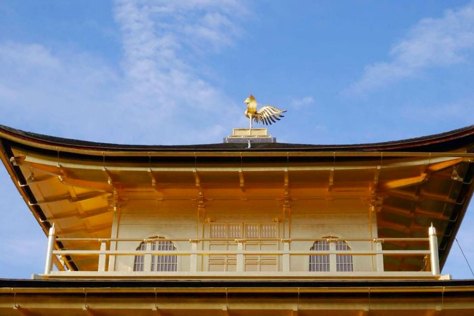 「金閣寺」金閣寺內供奉著是迦摩尼佛祖的舍利,不過佛寺是不能入內參觀的,屋頂還有一隻象徵吉祥的金銅合金鳳凰哦!(鳳凰照片感謝劉忠裕的友情贊助~)