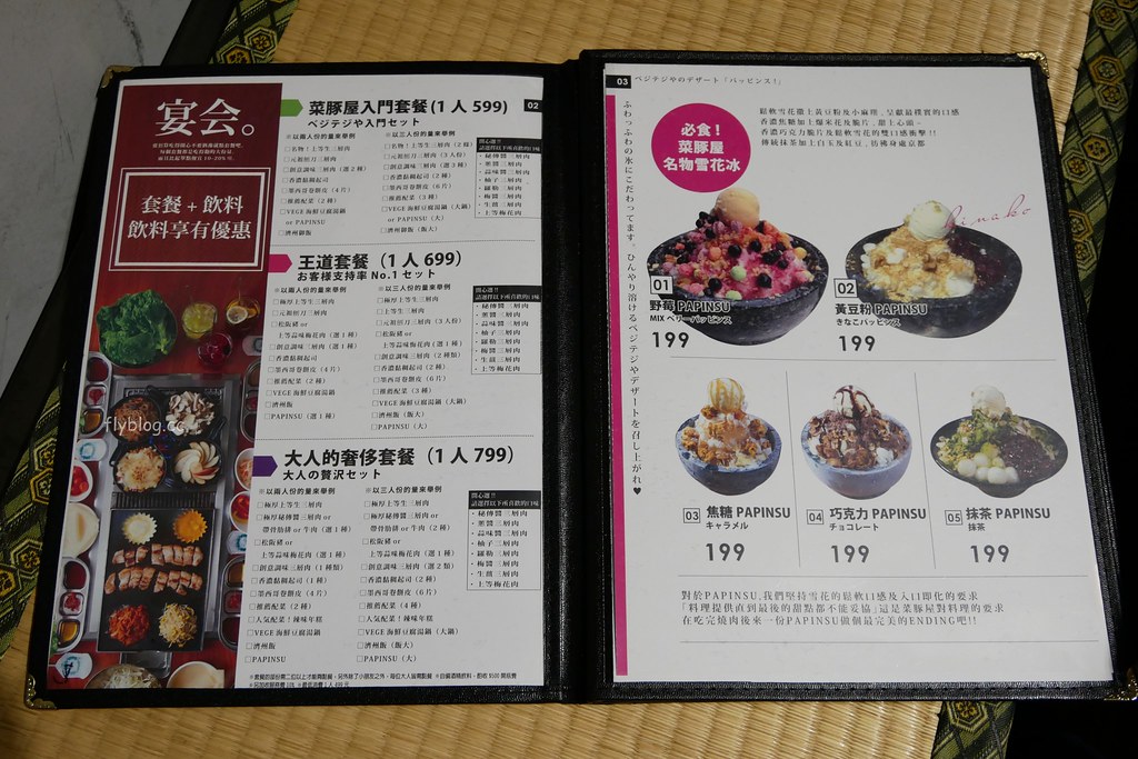 菜單主要就是左邊三種不同套餐,有$599元 / $699元 / $799元 三種,不過套餐都是兩人份,意思是雙人同行的話,兩個人都需要點一樣的才方便出菜…