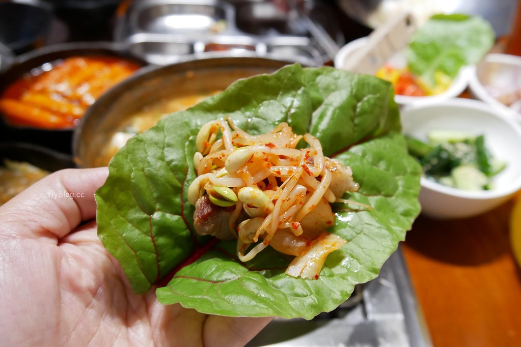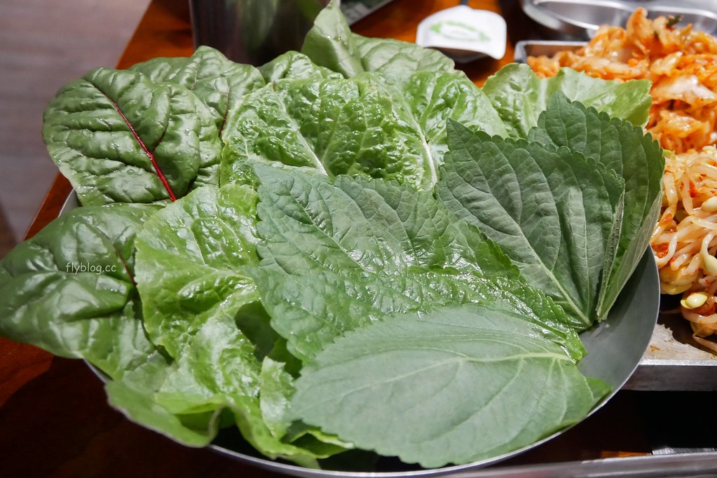 吃著芝麻葉包著烤肉,真的很像在韓國吃烤肉的感覺,芝麻葉有一種特殊的香氣,不過因為口感比較沒那麼嫩,可能也要看人吃吧!