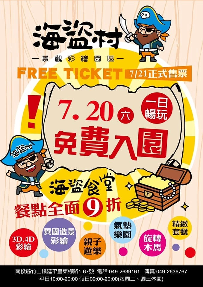 位於南投竹山的海盜村景觀彩繪園區應該是未開園就造成話題,園區除了有3D彩繪牆之外,還有夢幻的白色旋轉木馬、大型海盜船、氣墊溜滑梯…等。