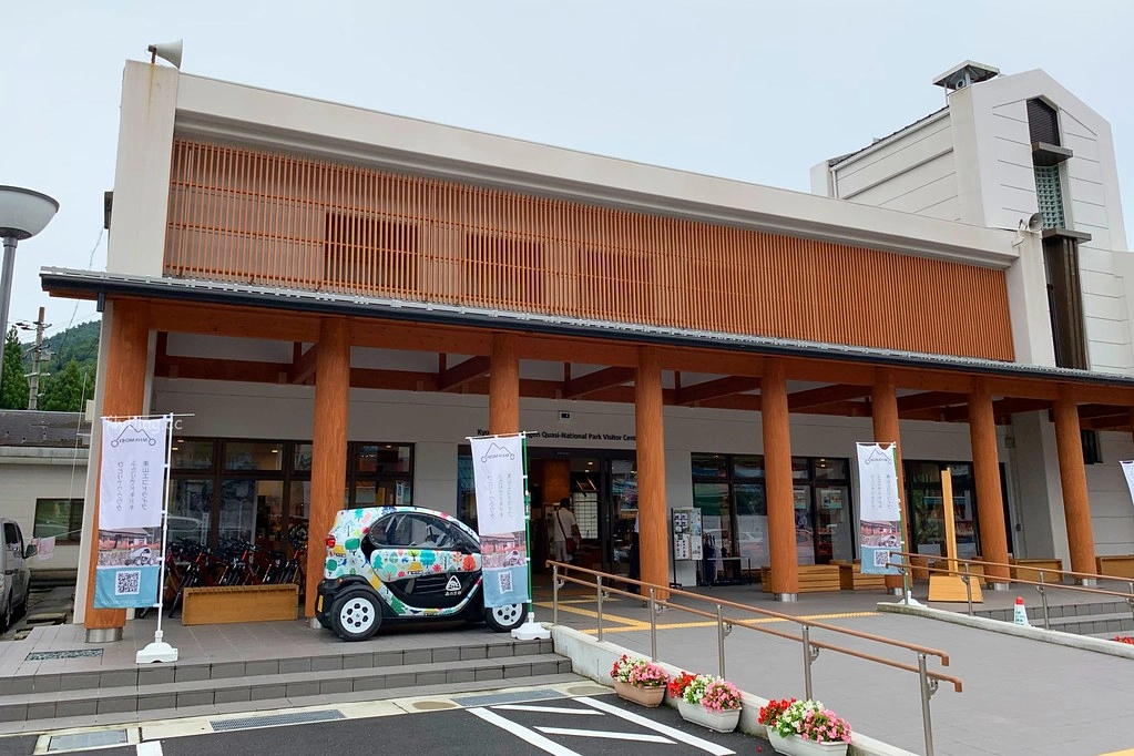 這裡就是美山案內所,也就是遊客服務中心,門口的電動車就是我們這次要駕駛的電動車型,很可愛吧?