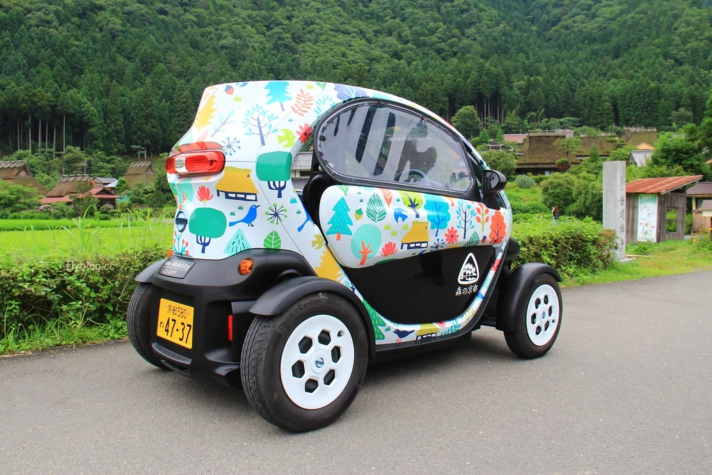 開著租來的電動車,我們一路抵達美山茅葺部落,車程大概是15分鐘,我覺得沿途風景很不錯,而且因為電動車太可愛了,路過的其他觀光客都搶著要跟電動車合照…