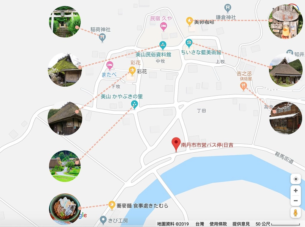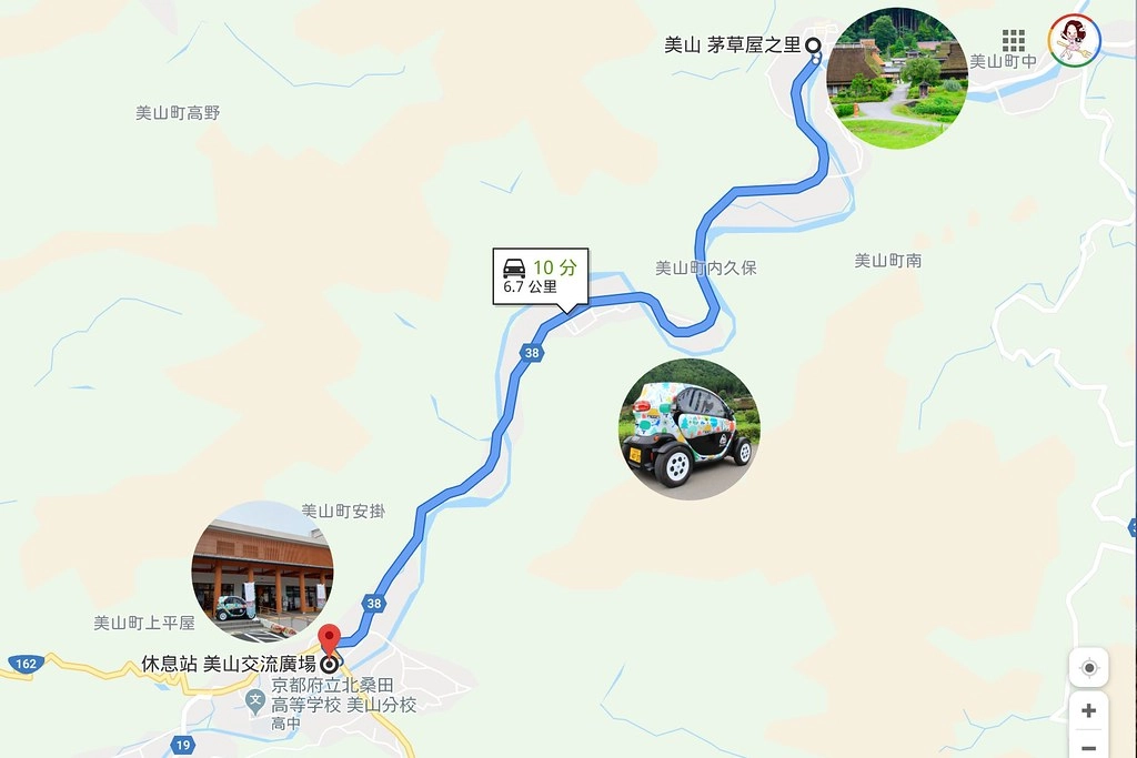 如果不是像我們一樣租電動車的話,那在【美山町自然文化村】下車即可,車程大概差了10分鐘。