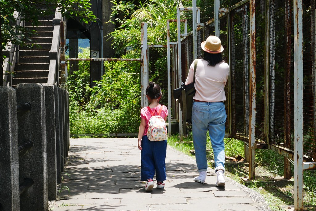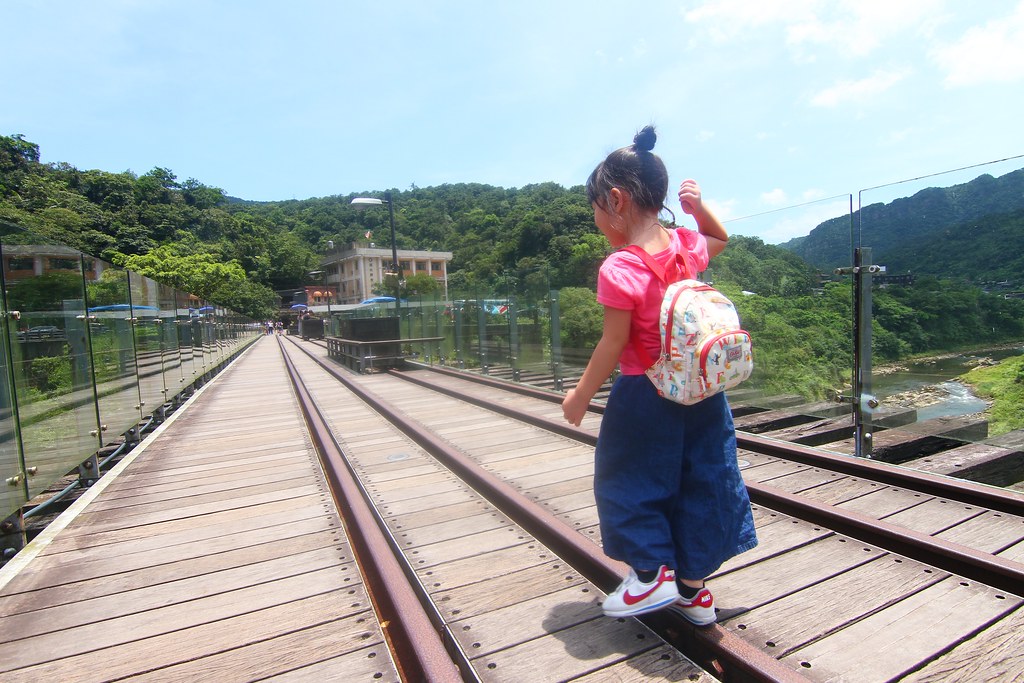 日正當中的,小櫻桃一向熱怕,我很怕她爆走,果真在鐵軌上玩了一下就喊熱想吃冰了,只好哄她再往前走走到底才買冰給她…