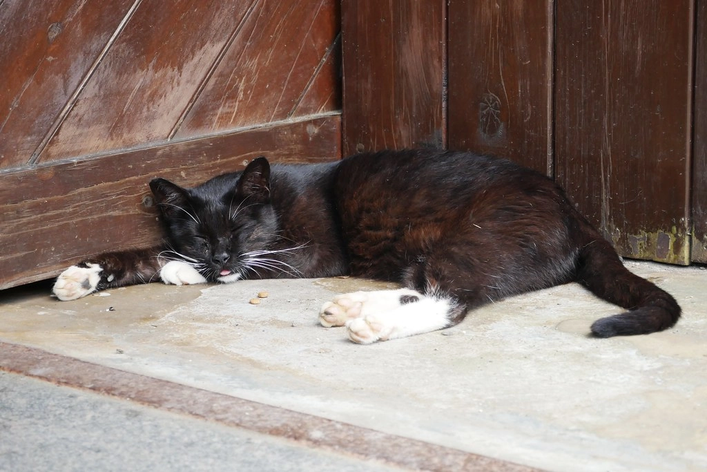 在樓梯旁讓我們看到了第一隻貓咪,在一邊懶散的打盹兒,也不理會旁邊來來去去的遊客,大家也拚命圍著牠拍照…