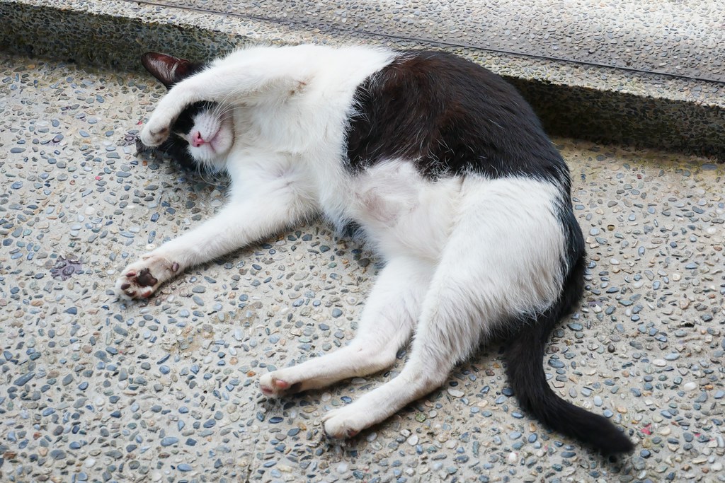 在7-11門口我們遇見了第二隻貓咪,也是一樣打盹不理人…