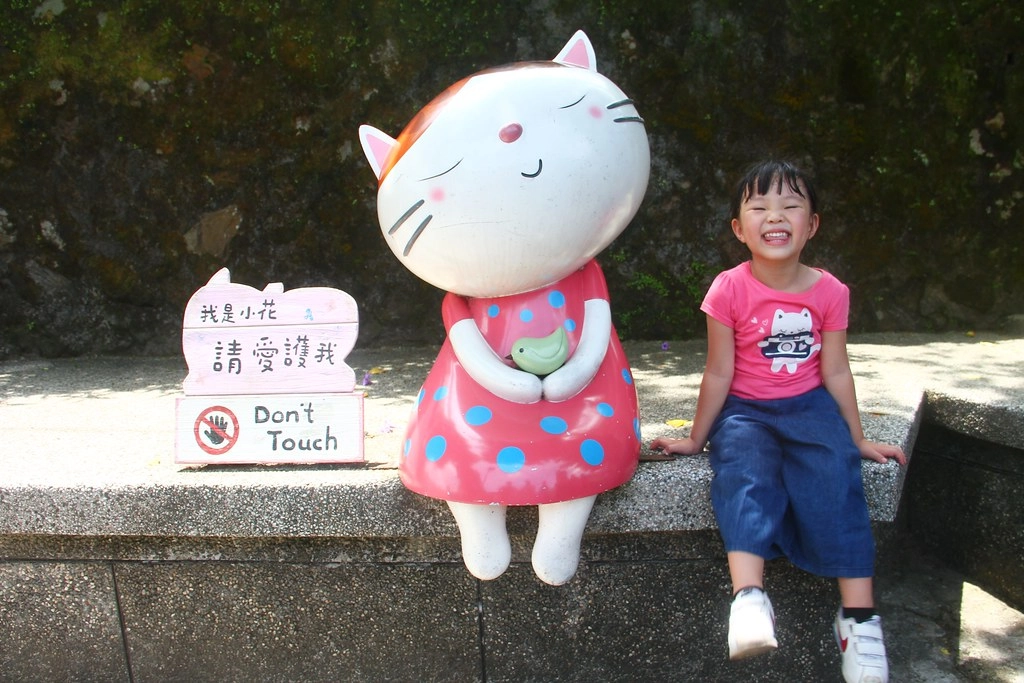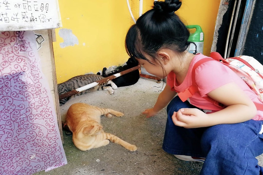 覺得猴硐貓村真的是小孩子的天堂,雖然天氣炎熱在爆走邊緣,不過看到可愛的貓咪還是會覺得可愛,還叫我們要幫她拍一張…