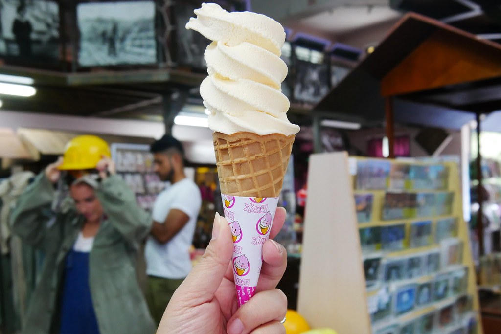 終於在瑞三礦業事務所裡面有賣,這霜淇淋是膠囊式的,我記得不便宜,不過還不錯吃啦!而且小孩喜歡就好…