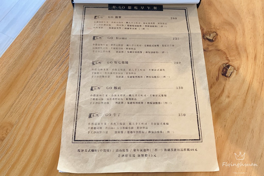 - 店家名稱:GO HOME食研室早午餐義大利麵