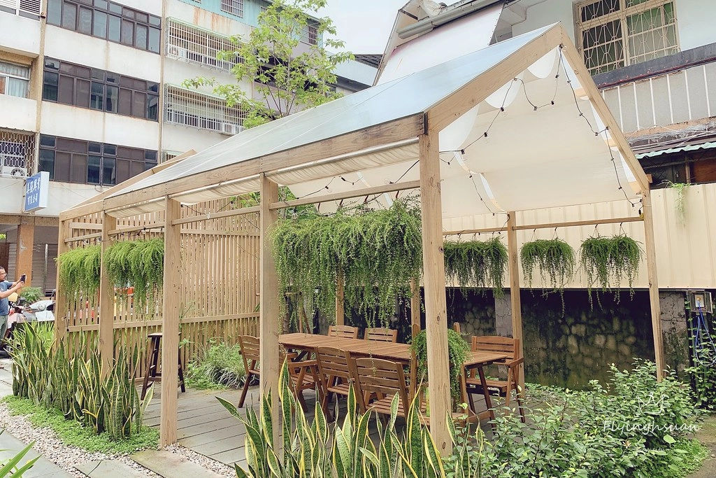 院子裡還有一個開放式的用餐空間,不過小黑蚊有點多就是了,我看排我前面的那女生腳一直被蚊子叮,還好我這天是穿長褲…