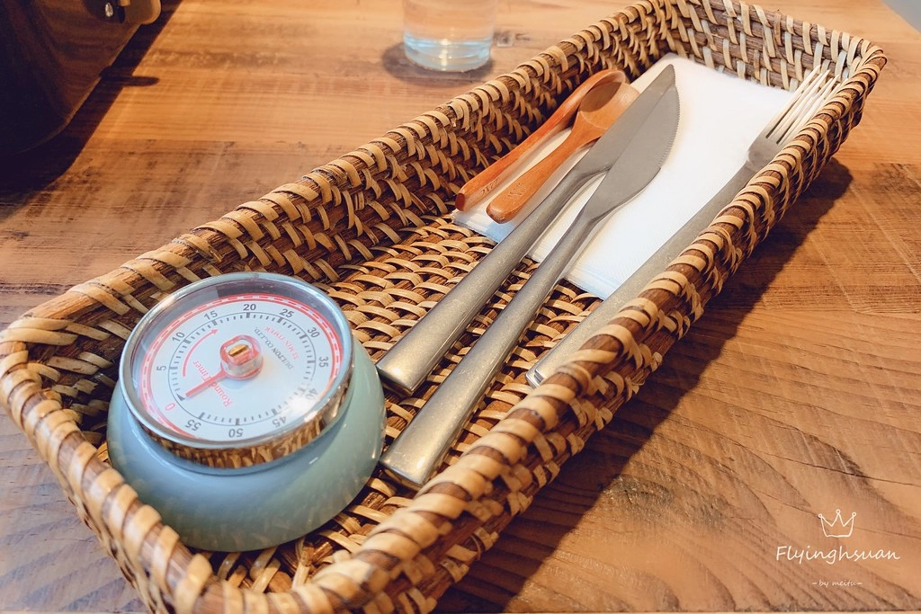 桌上有一個計時器,等它叫了之後服務人員就會過來幫忙翻面幫忙呈盤哦!